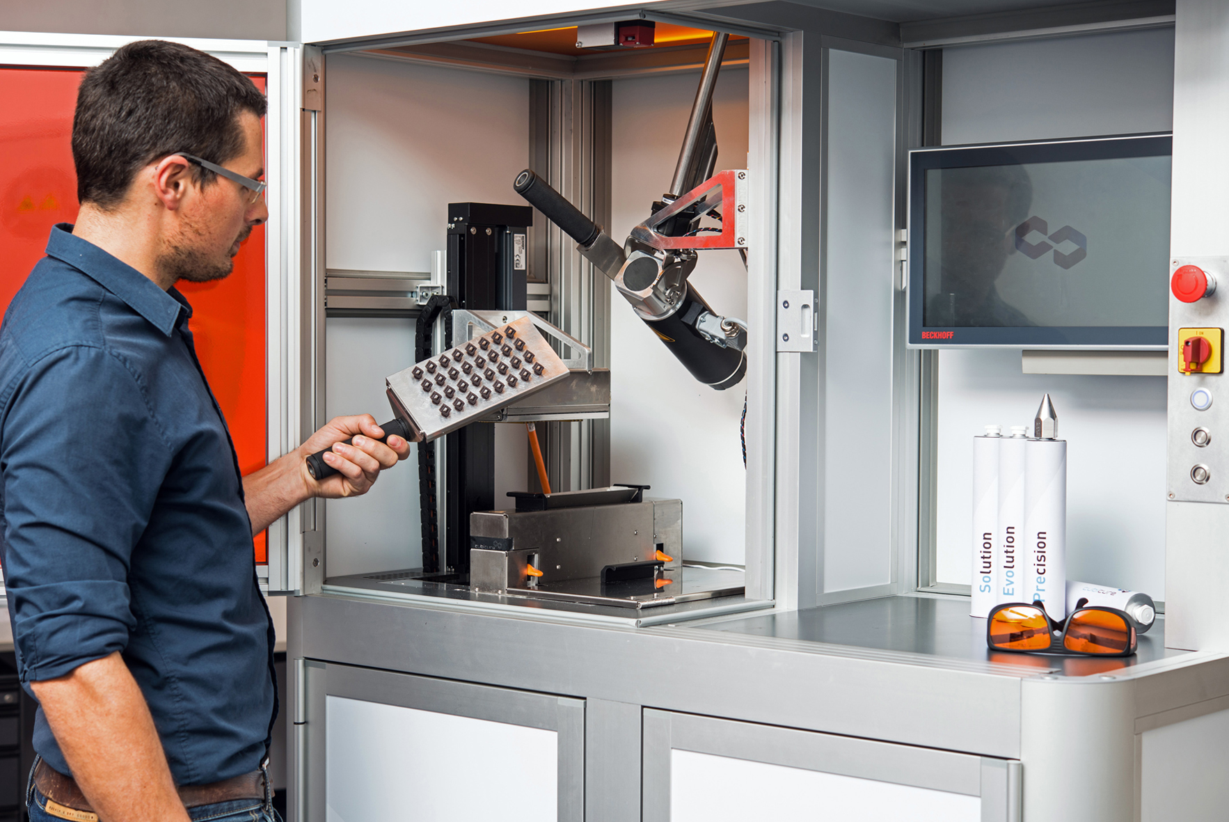 Caption 3: Cubicure uses item components for the enclosure of its innovative 3D printing system. Sensitive areas of the machinery are carefully protected but still easily accessible.
